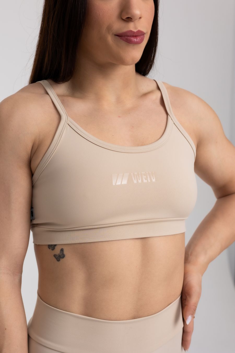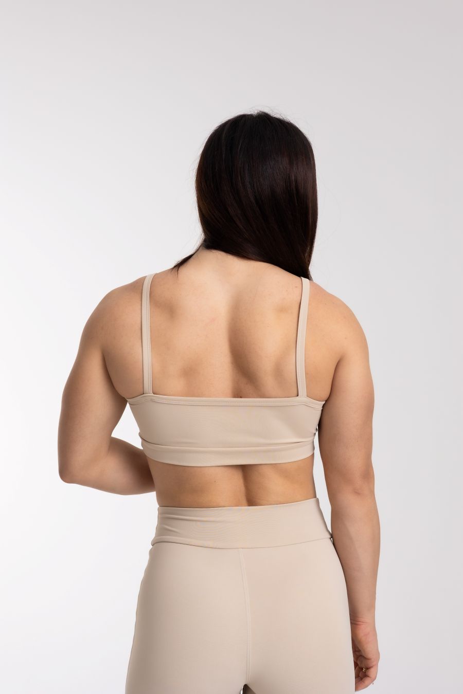 Alça fina, mas com sustentação necessária para um treino intenso.